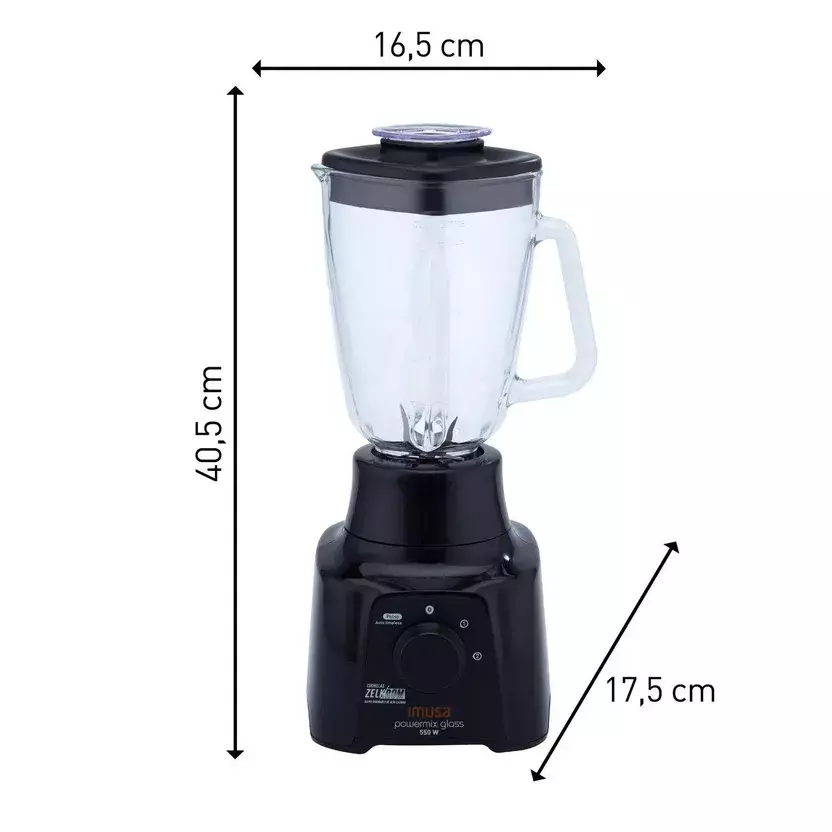Licuadora PowermixGlass Negra – 2 Velocidades, 550 W