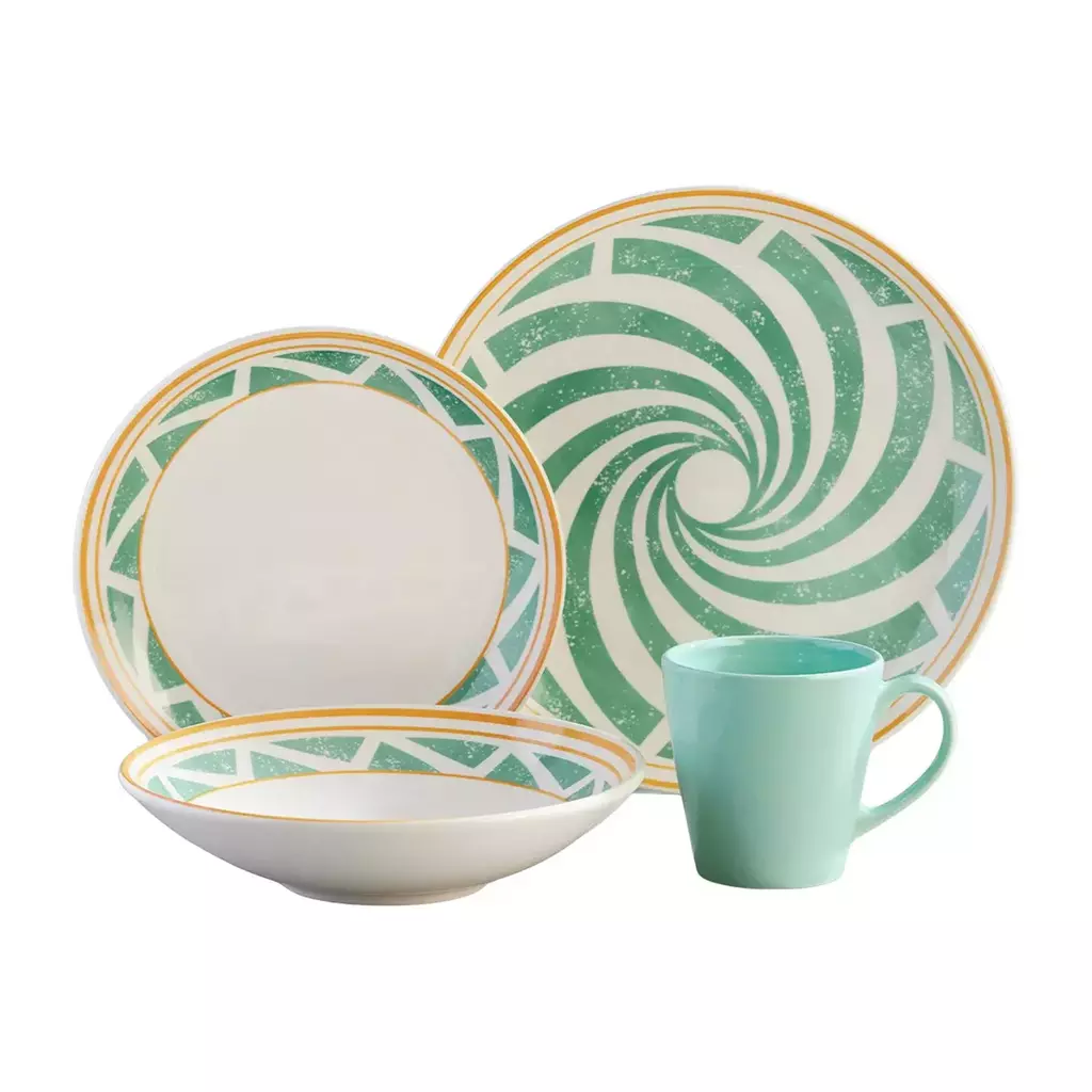 Un set de vajilla que combina frescura, elegancia y resistencia para cuatro personas, ideal para uso diario o momentos especiales.